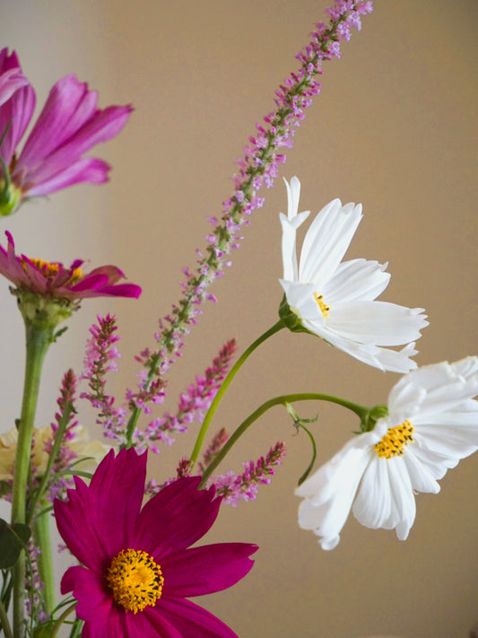 Enjoy cool-climate stems and posies grown organically at our micro flower farm. Choose between wrapped stems or vase and jar posies. Our mission is to bring affordable flowers to our community for everyday enjoyment.